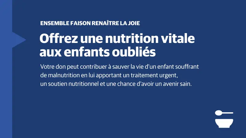 Votre générosité transforme le désespoir en espoir, la faim en satiété, et la peur en joie.